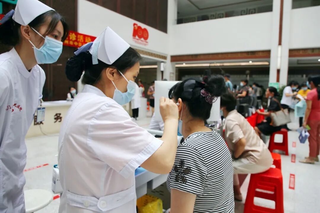 活动现场,眼科医护团队为到场的市民进行了免费视力检测、眼部检查,发放眼健康宣传资料,普及儿童青少年近视、老年白内障、糖尿病视网膜病变、青光眼等眼病防治知识,提高市民眼睛保护意识。义诊医生结合检查结果,细心地向眼疾患者讲解疾病成因和注意事项,并给出下一步检查和治疗建议。